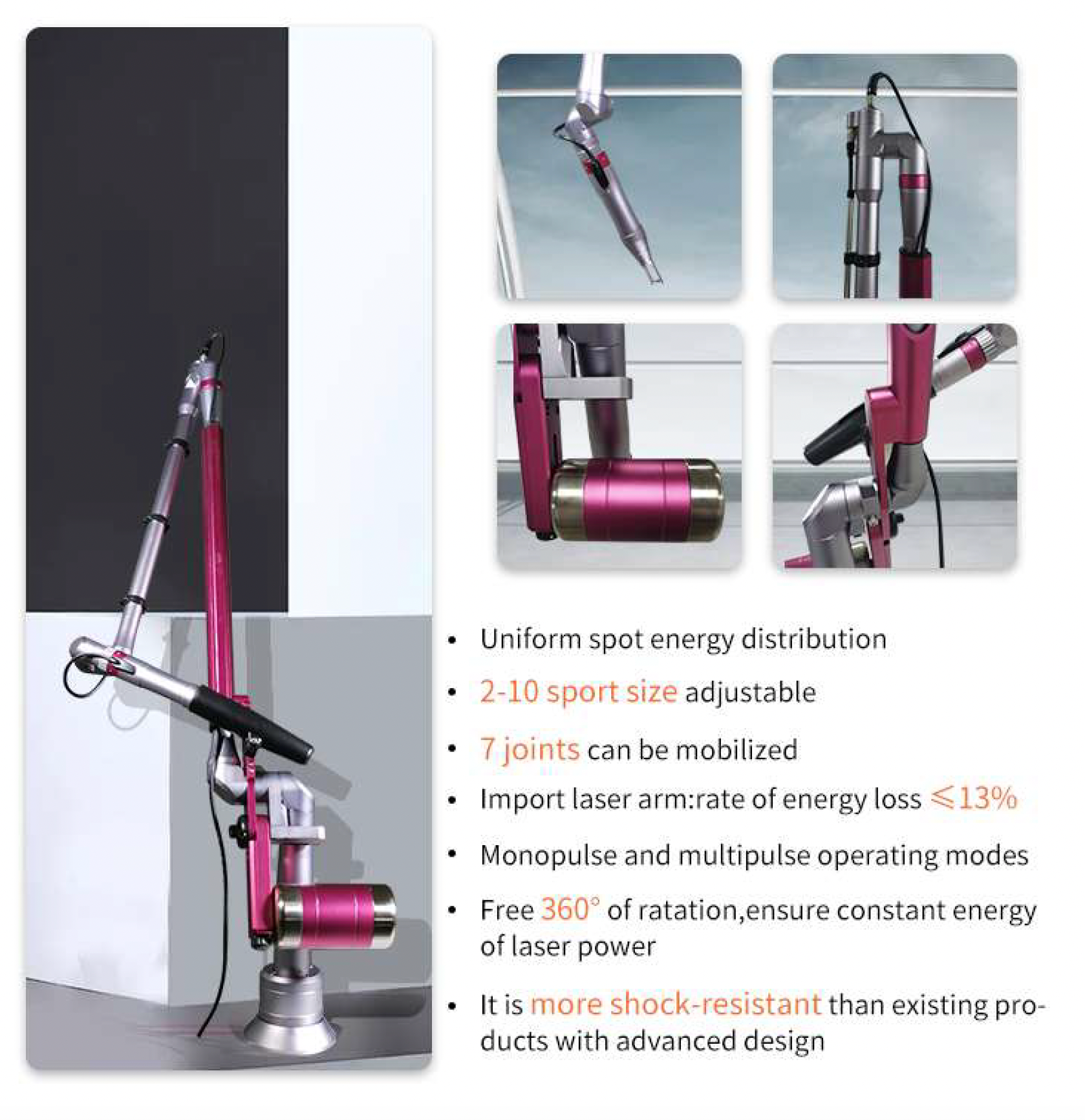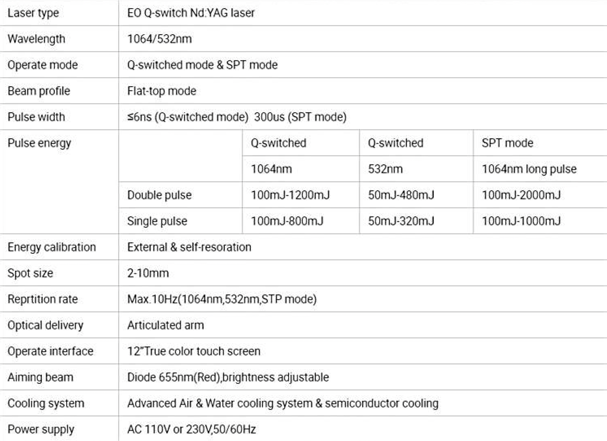 Q-Switch Nd:YAG Nanosecond laser. Handle 1064nm/ 532nm automatically adjust according to tattoo color